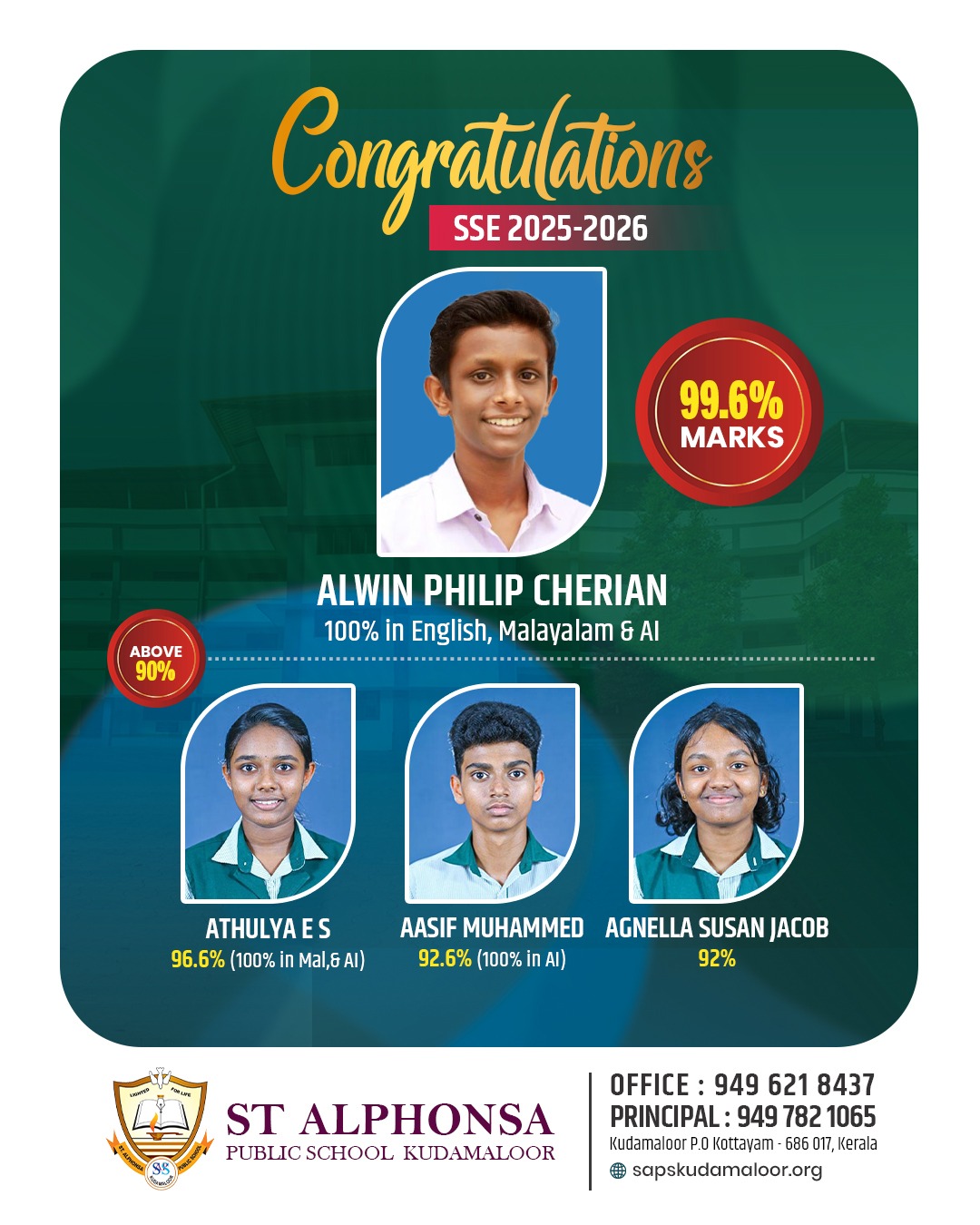 I am Angela Liza Benny an alumnus of St. Alphonsa Public School, Kudamalloor. I studied in SAPS for 9 years and my journey in the school was excellent. Readmore…